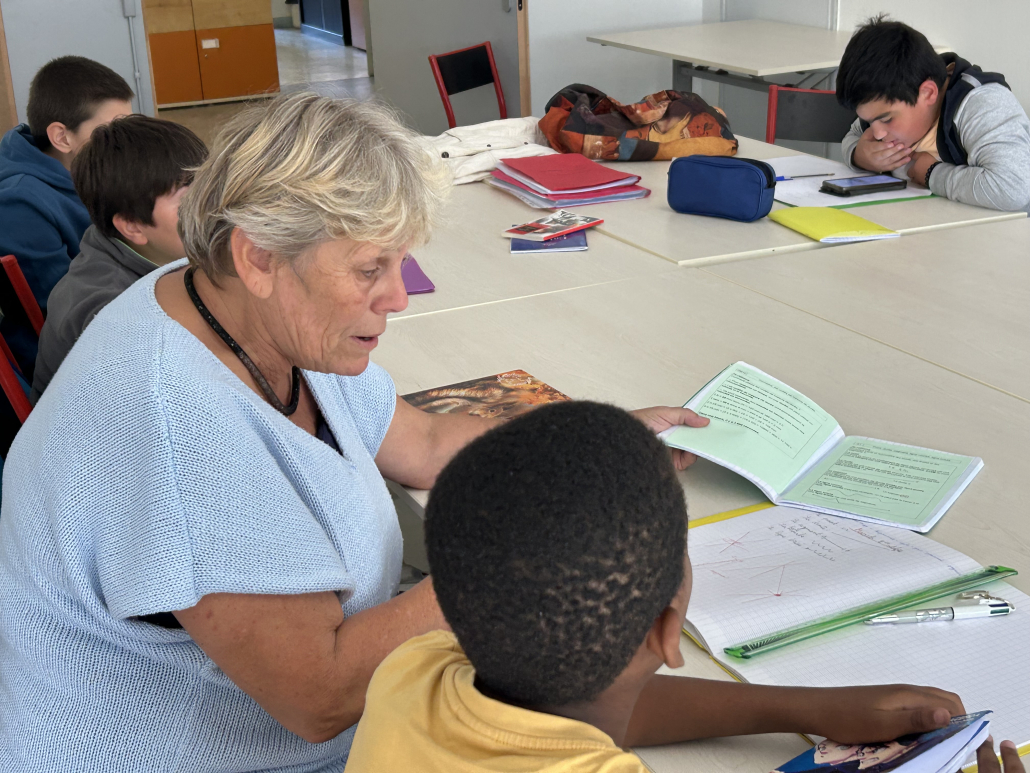 En 2025, l’effectif d’élèves non francophones a augmenté. Cette année, nous avons décidé de détacher ponctuellement l’une des enseignantes pour accompagner les CM non-lecteurs dans le travail de décodage. L’accompagnement se fait en binôme, certains élèves se sentant mal à l’aise face à cette difficulté.